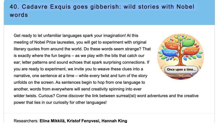 In a setting like Science is Wonderful!, this is not trivial. The environment is dense, fast, and full of competing stimuli—high tech lab equipment, experiments, simulations. Attention shifts quickly. Yet here, a literary game holds its ground. Part of its strength lies in contrast. In a space largely shaped by STEM, this booth introduces the humanities without isolating them. It does not argue for their relevance. It demonstrates it—through language, play, and shared construction.
