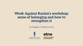 On Tuesday, March 17, the University of Jyväskylä, in cooperation with the Central Finland’s Advisory Board for Ethnic Relations ETNO, will hold a workshop on the sense of belonging and how to strengthen it. The workshop is aimed especially at students and young people with an immigrant background, or to international students. Others, such as students studying in international degree programs, are also welcome to attend.