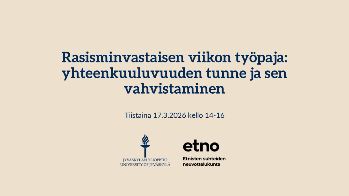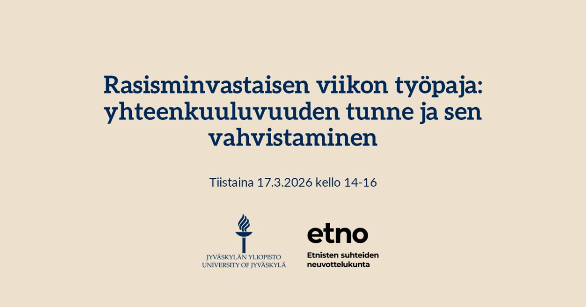 Työpajan järjestävät Jyväskylän yliopisto ja Keski-Suomen Etnisten suhteiden neuvottelukunta ETNO. Ilmoittaudu mukaan viimeistään 13.3. Webropolin kautta. Paikkoja työpajassa on rajallinen määrä. Työpaja ja kirjastokierros ovat maksuttomia.