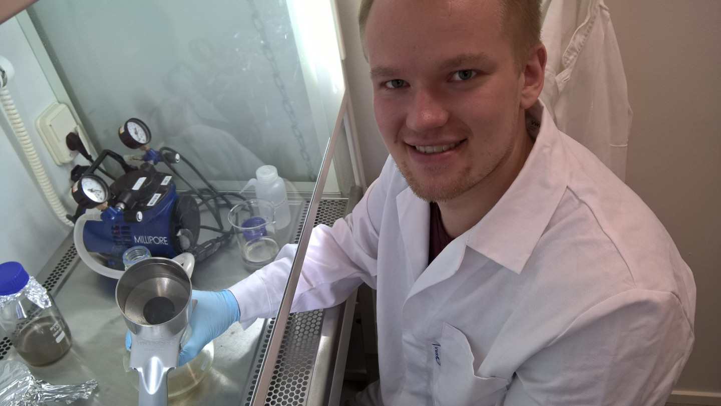 - Tämä on edistyksellinen toimenpide, jonka tehokkuus mikromuovien poistossa kiinnostaa laajasti. Kiekkosuodattimen lisäksi tässä työssä tutkitaan yksityiskohtaisesti puhdistamon lietteenkäsittelyn vaikutusta puhdistamolta lähteviin mikromuoveihin, kertoo pro gradu -työn tekijä Kalle Ryymin.
