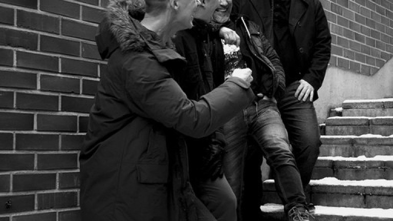 Onni ”Hot Nutz” Hirvonen, Olli-Pekka Moisio, Mika Ojakangas ja Joona Taipale poseeraavat hyväntuulisina, kun Jesse Liimatainen räpsii heistä kuvia. Ja karkaahan se homma välillä vähän lapasestakin.
