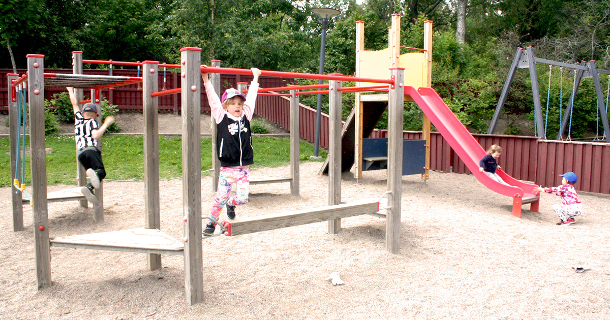 Päiväkodin iso ja monipuolinen piha-alue edistää lasten motoristen taitojen kehittymistä