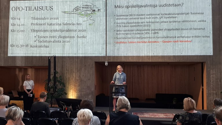 Hanke-esittelyiden lisäksi tilaisuudessa oli puhumassa professori Katariina Salmela-Aro, joka kertoi opiskelijoiden motivaatiosta ja jaksamisesta sekä uudistusten mahdollisesta vaikutuksesta välivuosiin ja opintomenestykseen.