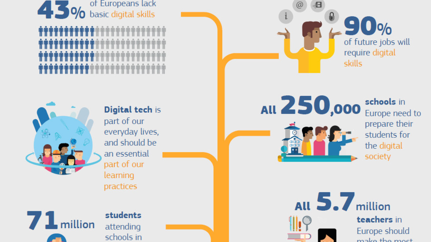 EU:ssa 76,7 miljoonalle opiskelijalle ja opettajalle 250 000 koulussa tarjotaan mahdollisuus ottaa käyttöön SELFIE- itsearviointityökalu (Self-reflection on Effective Learning by Fostering the use of Innovative Educational Technologies).