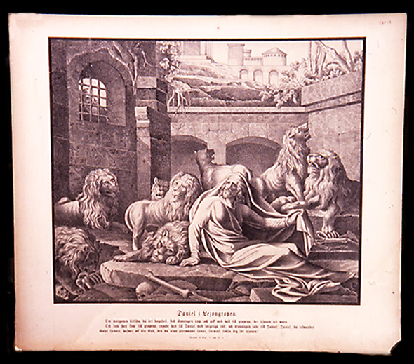 568 : 1 – "Daniel leijonaluolassa." / Daniel i Lejongropen (17.) Ei muita tietoja.