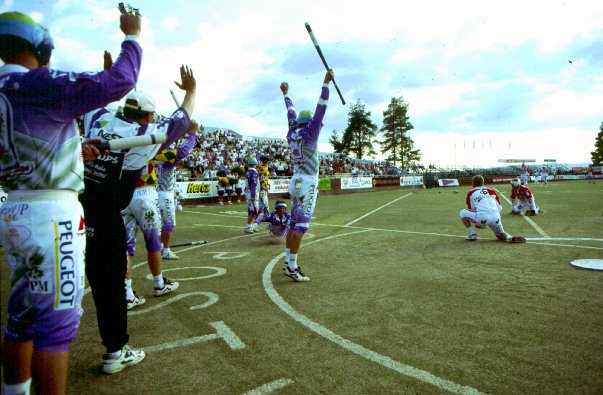 Jyväskylän Kirin riemua Hippoksella vuoden 1996 Suomen mestaruuden